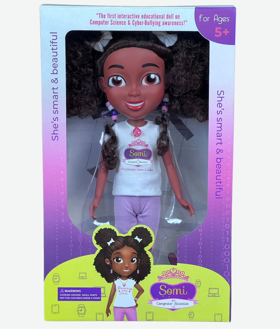 1) One award-winning interactive 14-inch Somi, the Computer Scientist doll