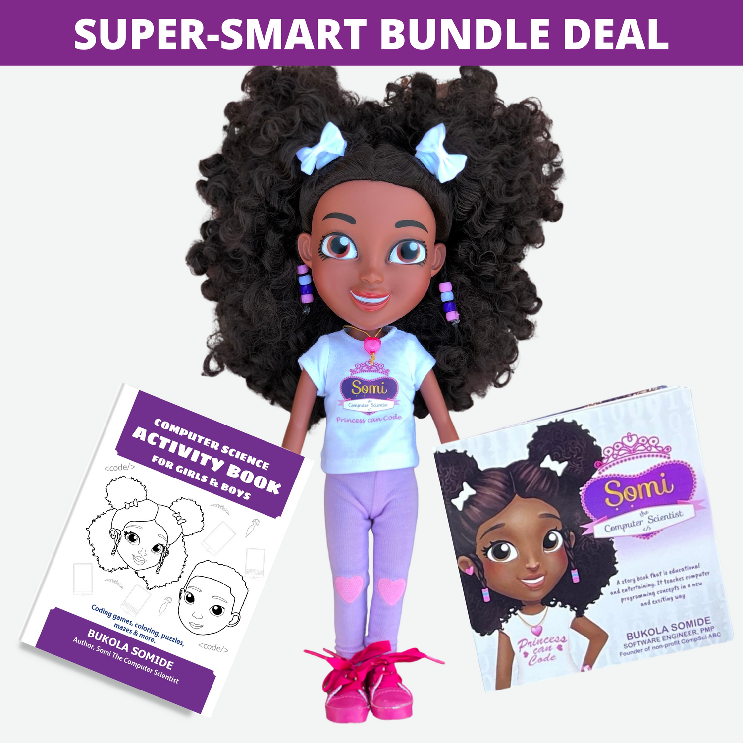 Super-Smart Bundle Kit: STEM Books with 14-inch Somi the Computer Scientist Interactive Doll